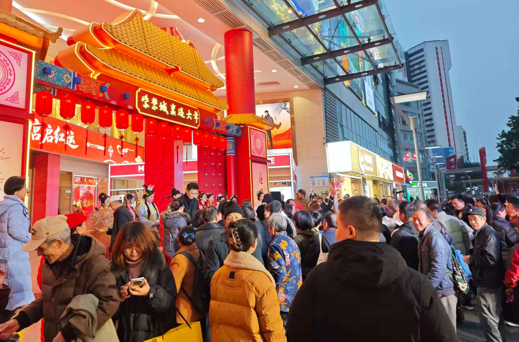 重百新世纪百货旗下50家百货商场和“重百云购”商场,重磅推出“开年大戏·宫启红运”,冬季商品五折起。随着天气降温,销售不断“升温”。旗下自有品牌宝元通黄金、墨素(男装)、重百优选、小新百集和重百优集购等,也纷纷推出不同形式的优惠让利,让广大消费者感受到实实在在的特惠。各百货场店还结合“紫禁城里过大年”主题自主开展了丰富多彩的引流助销活动。通过亮灯仪式、零点跨年、非遗灯饰、宫饰美陈、宫墙飞雪、烟花灯光秀等高人气活动,成功助销增效。